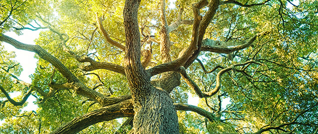 A family outside near a tree